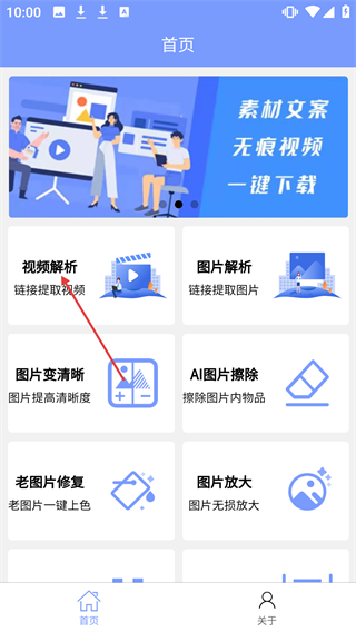 1、在首頁點擊【視頻解析】選項,進入鏈接提取視頻的功能頁面。