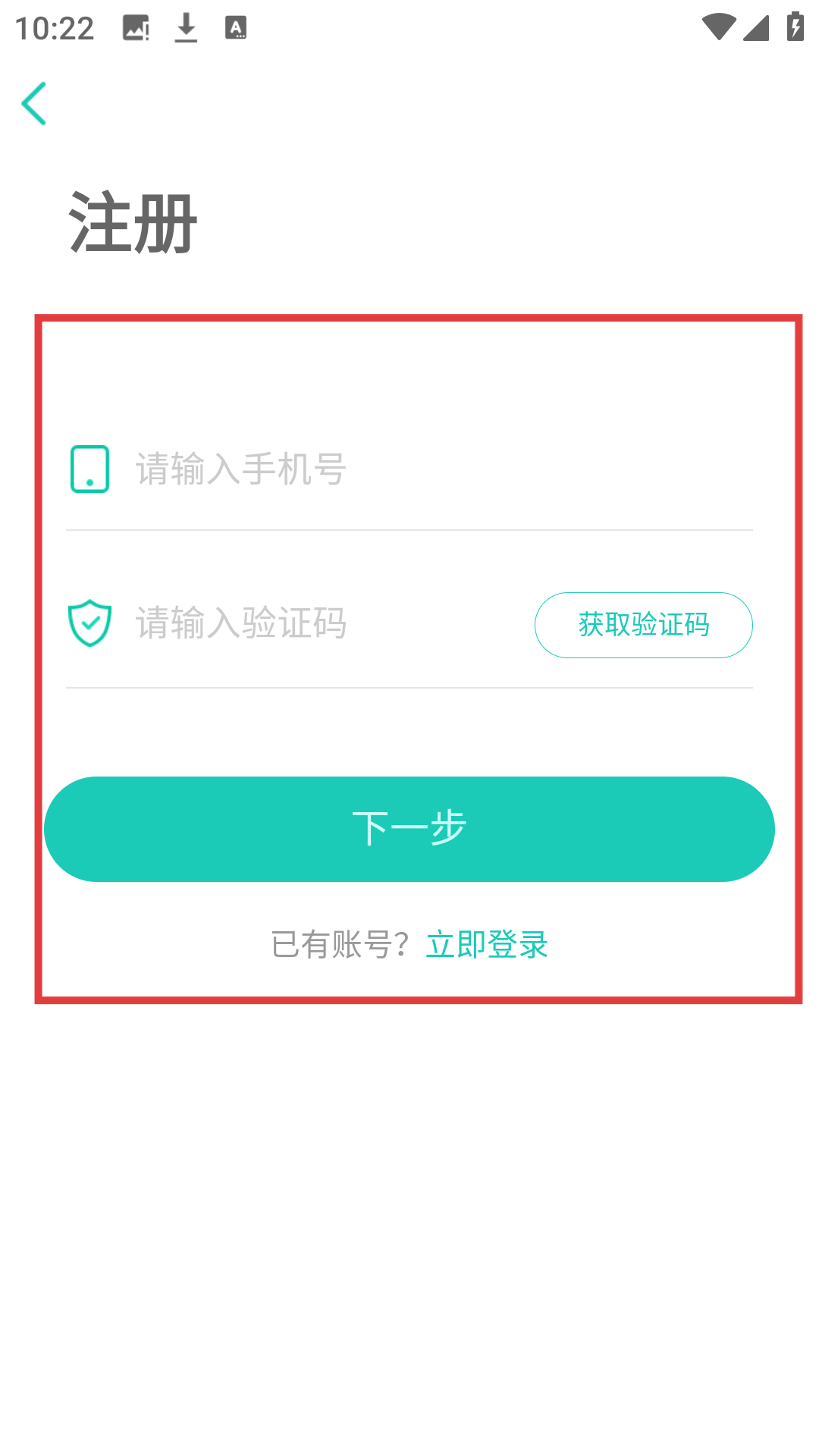 3、在注冊界面填寫手機號、驗證碼,點擊【下一步】,可繼續完成注冊流程哦。