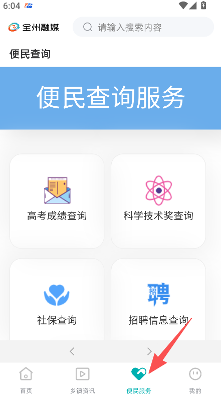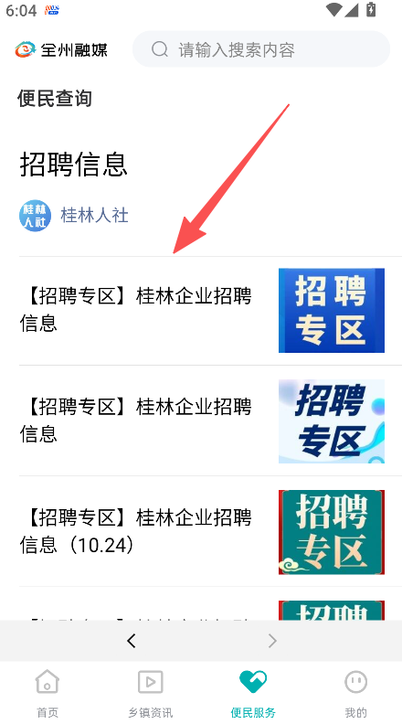 1、進入便民服務板塊,選擇招聘信息查詢。