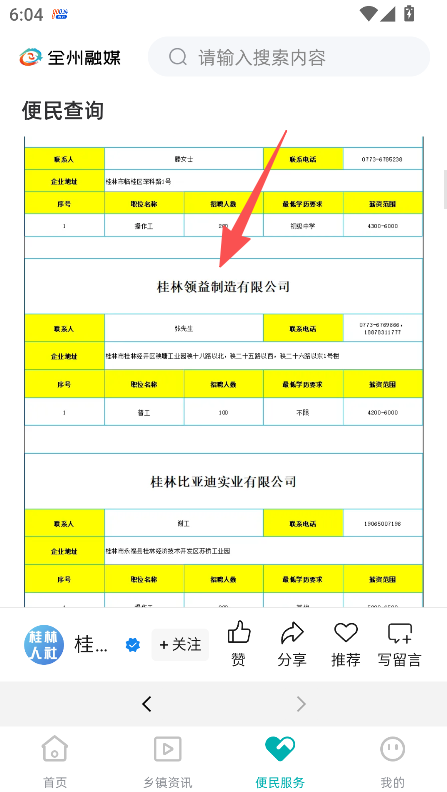 2、以本地就業服務為亮點,提供詳細招聘信息,包括企業名稱、聯系人、崗位要求等,助力居民了解本地就業機會。