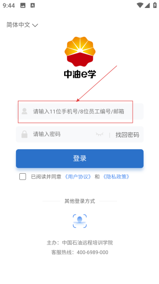 2、在中油e學(xué)登錄頁,輸入【賬號信息】,完成賬號輸入操作。
