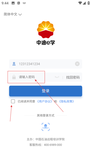 3、在登錄頁【填寫對應(yīng)密碼】,勾選【協(xié)議】完成賬號登錄的信息核對步驟。