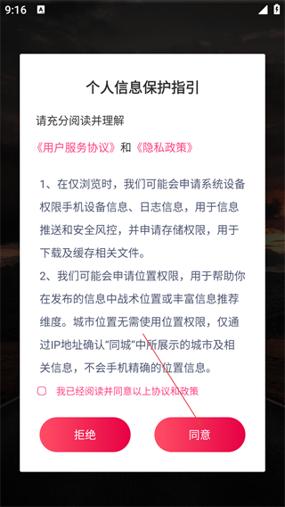 1、首次打開軟件,閱讀《個人信息保護指引》,勾選“我已閱讀并同意”后點擊【同意】,進入應用。