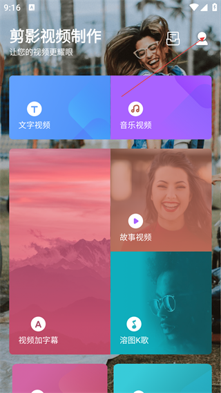2、在主界面選擇功能模塊(如文字視頻、音樂視頻等),開始視頻制作。