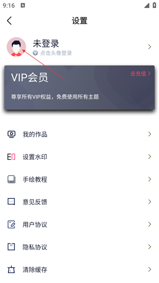 3、進入【設置】頁面,點擊頭像區域,可選擇登錄賬號,解鎖VIP等功能。