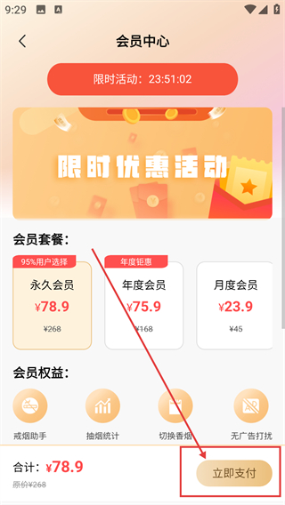 3、在會員中心選好套餐后點擊【立即支付】,就能進入確認訂單頁面,準備完成支付流程啦。