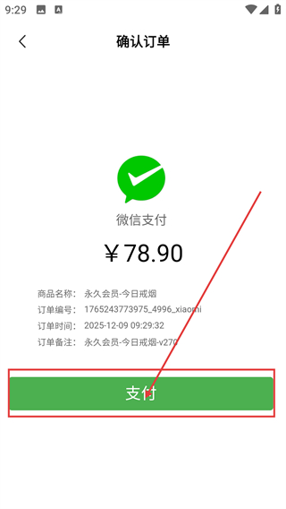 4、在確認訂單頁核對信息后點擊【支付】按鈕,就能通過微信支付完成會員的購買啦。