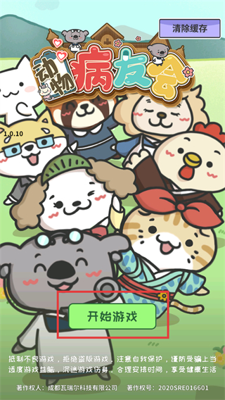 1、進入游戲啟動界面,可看到【動物病友會】標題,找到【開始游戲】按鈕點擊進入。
