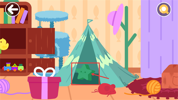 3、在房間場景中,點(diǎn)擊標(biāo)注的【綠色星星】獲取該物品,完成收集目標(biāo),為滿足小貓的需求做準(zhǔn)備。