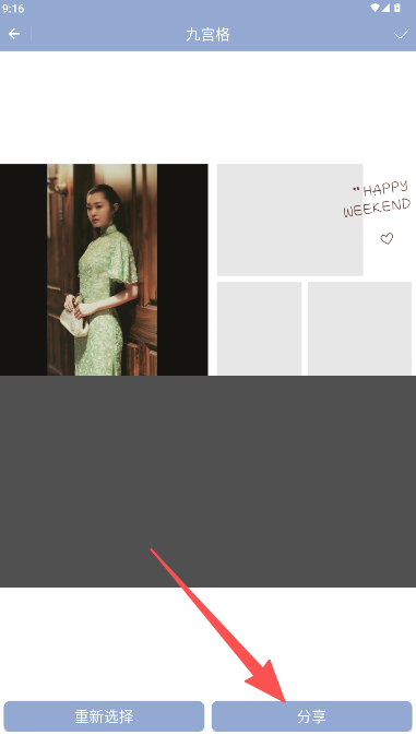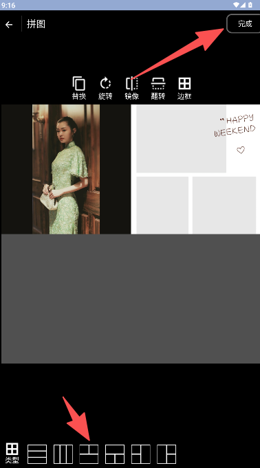 2、在編輯頁選擇“九宮格”等布局并設(shè)置邊框樣式。