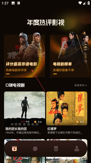 1、在首頁,點擊【評分最高華語電影】選項,進入對應影視榜單頁面。