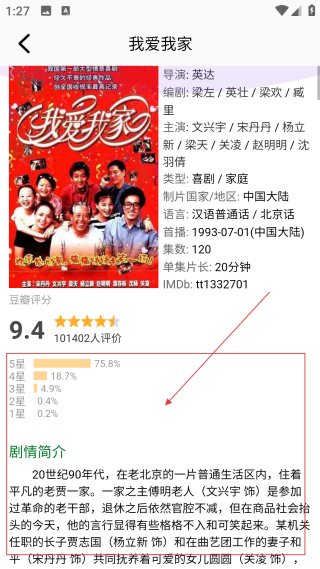 4、在作品頁,即可查看【劇情簡介】等信息,了解該影視的詳細內容。