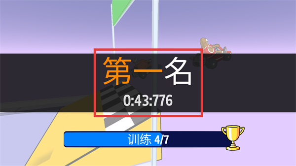 4、沖過終點后獲得【第一名】,用時【0:43:776】,完成【訓練4/7】的賽事目標。
