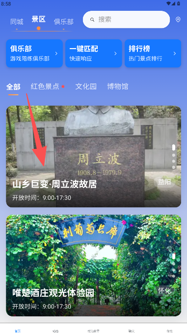 1、在首頁(yè)點(diǎn)擊目標(biāo)景區(qū)的景點(diǎn).。
