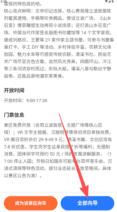 2、進(jìn)入景區(qū)詳情頁(yè)查看門票與特色點(diǎn)擊“全部向?qū)А薄?