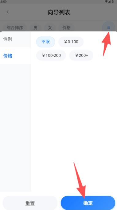 3、點(diǎn)擊“右上角三條彈窗出價(jià)格篩選并確認(rèn)約伴。