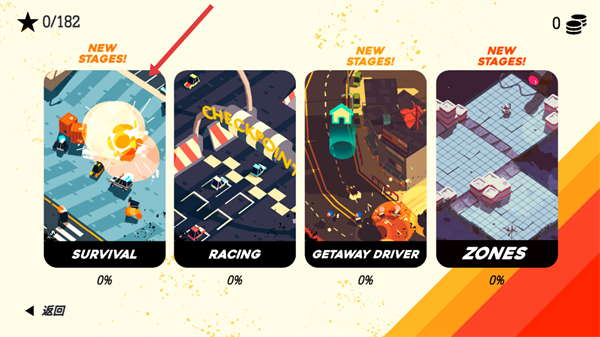 1、選擇【SURVIVAL】模式進入游戲,該模式標(biāo)注【NEW-STAGES!】,開啟生存類逃亡關(guān)卡。