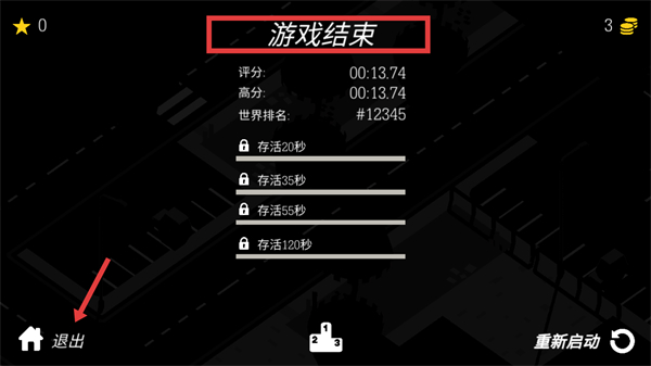4、【游戲結(jié)束】后查看評分,點【退出】返回主界面。