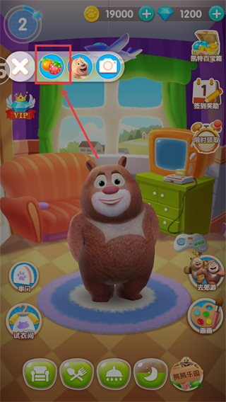 1、主界面點擊頂部的【水果圖標(biāo)】,進入對應(yīng)互動玩法,當(dāng)前持有【19000】金幣與【1200】鉆石。
