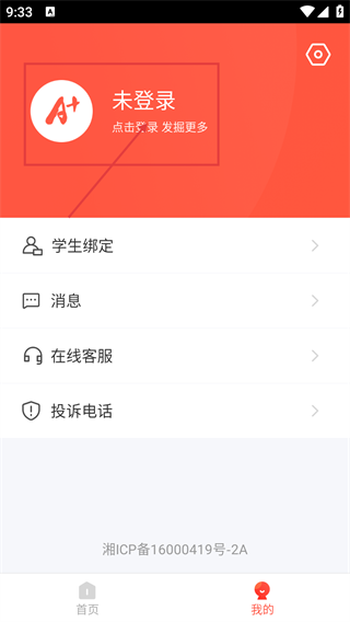 3、進(jìn)入【我的】頁(yè)面后,顯示【未登錄-點(diǎn)擊登錄-發(fā)掘更多】提示,同時(shí)可見(jiàn)【學(xué)生綁定】【在線客服】等功能,需登錄解鎖更多權(quán)限。