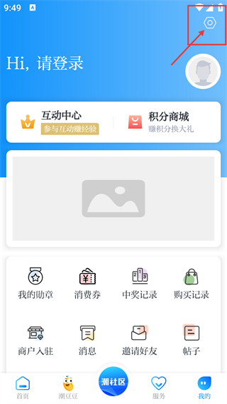 2、進入【我的】頁面后,可查看【互動中心】【積分商城】等功能,點擊右上角的【設置】圖標,就能進入設置界面。