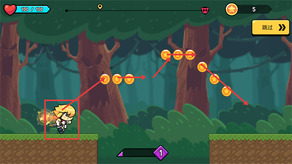 2、操控角色在森林場景移動,收集場景中的星星道具,當前星星數量為【5】,積累星星可用于后續資源兌換或能力提升。