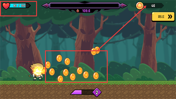 4、擊敗BOSS后角色血量變為【80/100】,同時收集BOSS掉落的星星,當前星星數量達【46】,需規劃戰后的血量回復。