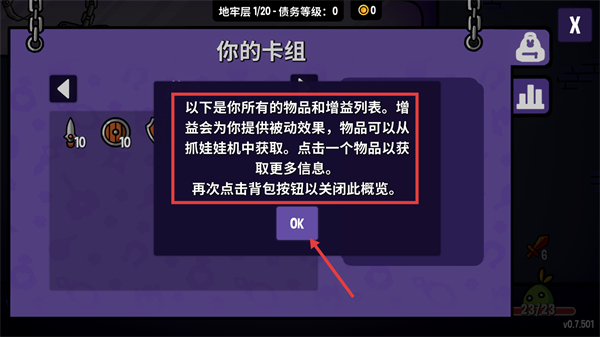 4、查看【你的卡組】界面,了解物品被動(dòng)增益與主動(dòng)效果,合理搭配卡組提升戰(zhàn)斗策略靈活性。