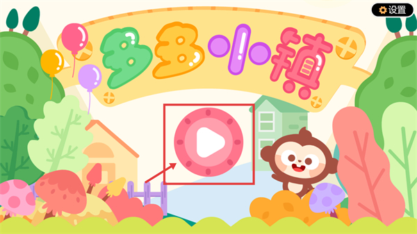 1、看到【多多小鎮】的啟動界面,點擊粉色帶播放標識的按鈕,這是進入游戲的關鍵步驟,點擊后即可開啟小鎮相關的作業玩法。