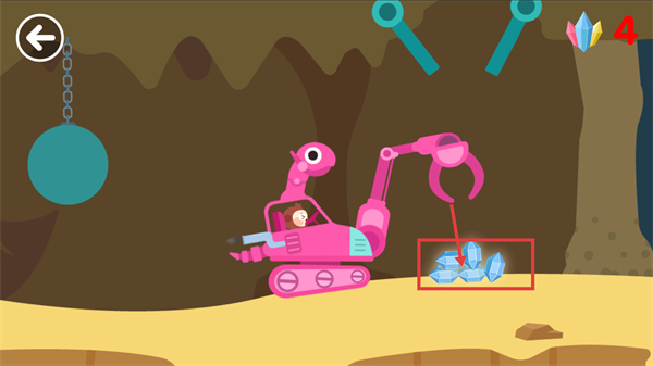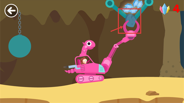 2、操控【粉色挖掘機】的夾取裝置,對準礦石完成夾取操作,此時右上角顯示【鉆石-4】,完成該操作可積累鉆石資源。