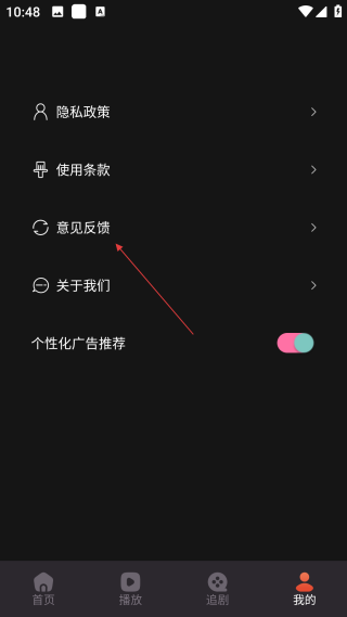 2、在個人頁面,點擊【意見反饋】選項,進入意見反饋的填寫界面。