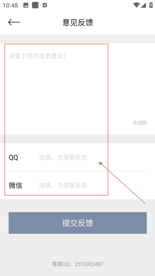 4、在信息填寫完成后,點擊【提交反饋】按鈕,即可完成意見的提交操作。
