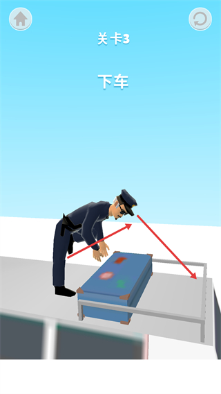 2、操控警察角色靠近藍色箱子并進行互動,完成該環節操作以繼續推進【關卡3-下車】的流程。