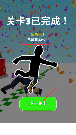4、【關卡3】完成后解鎖【新角色-33%】的進度,點擊【下一關卡】按鈕即可開啟后續的關卡挑戰。