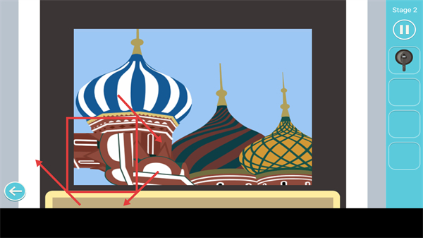 1、進(jìn)入【Stage-2】場(chǎng)景,互動(dòng)紅色框標(biāo)注的建筑區(qū)域,借助左側(cè)箭頭按鈕調(diào)整視角,獲取該環(huán)節(jié)的關(guān)鍵線索。