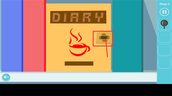 3、打開【DIARY-4】封面,找到紅色框標(biāo)注的密碼裝置,準(zhǔn)備輸入之前獲取的數(shù)字線索推進(jìn)流程。