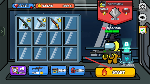 1、在裝備界面確認已解鎖的武器,點擊【START】按鈕,進入大逃殺對局開啟戰(zhàn)斗挑戰(zhàn)。