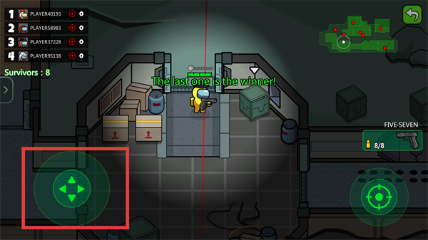 3、發(fā)現(xiàn)對手后,點擊射擊按鈕使用【FIVE-SEVEN】武器發(fā)起攻擊,淘汰目標積累優(yōu)勢。