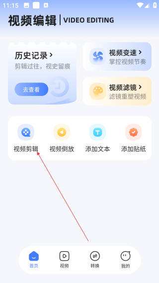 1、在視頻編輯首頁,點擊【視頻剪輯】選項,進入選擇視頻的操作界面。