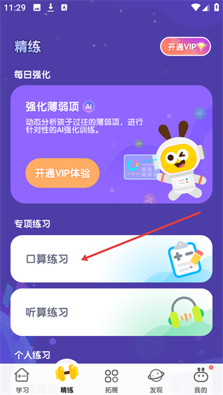 2、進入精練頁面后,找到【專項練習(xí)】板塊下的【口算練習(xí)】選項,點擊該選項即可進入對應(yīng)的練習(xí)頁面。
