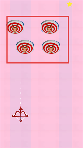 1、進入游戲界面后,操作下方的弓箭,瞄準上方帶鹿頭的靶標進行射擊,觸發靶標的增殖機制。