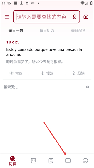 1、在當前詞典頁面,點擊底部的【學習】按鈕,可切換至學習頁面。