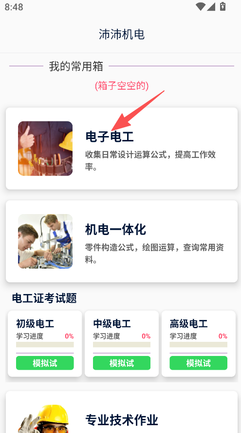 1、聚焦機電領域劃分多類板塊,包含電子電工機電一體化等,整合工具庫與考試相關內容。