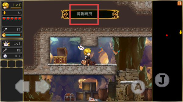 3、開啟寶箱后獲得【得到精靈】的提示,解鎖精靈類輔助道具,提升角色的冒險能力。
