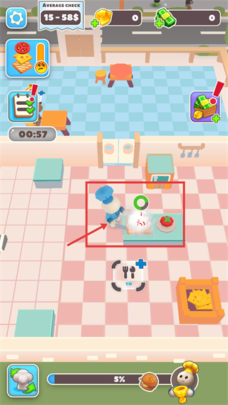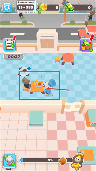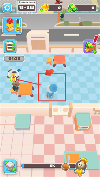 1、看到【Average-Check-15-58$】的餐廳界面,操控角色前往就坐的顧客處,接收訂單需求,推進(jìn)餐廳的服務(wù)流程。