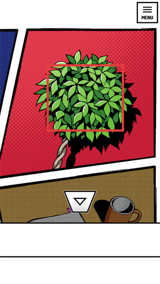 2、聚焦盆栽分鏡,點擊綠植區域觸發互動,獲取隱藏的道具線索,推進逃脫流程。