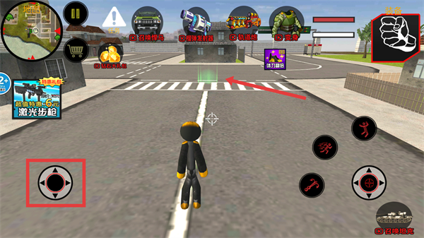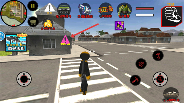 2、使用方向鍵操控火柴人移動,前往箭頭所指區(qū)域開啟任務。