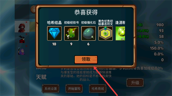 4、完成探索后領(lǐng)取獎(jiǎng)勵(lì)(如【10哈密結(jié)晶】等道具),積累資源用于角色養(yǎng)成與后續(xù)冒險(xiǎn)。