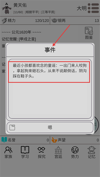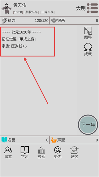 2、注意家族事件中的壓歲錢獎勵,獲取初始銀兩,為學習處世等屬性提升儲備資源。