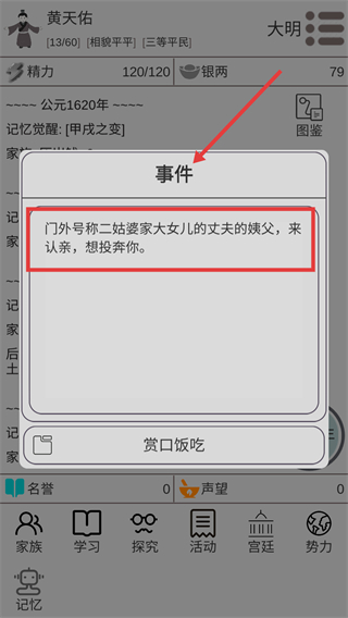 1、面對(duì)遠(yuǎn)親投奔事件選【賞口飯吃】積累人脈資源助力前期發(fā)展為后續(xù)任務(wù)解鎖奠定基礎(chǔ)。